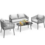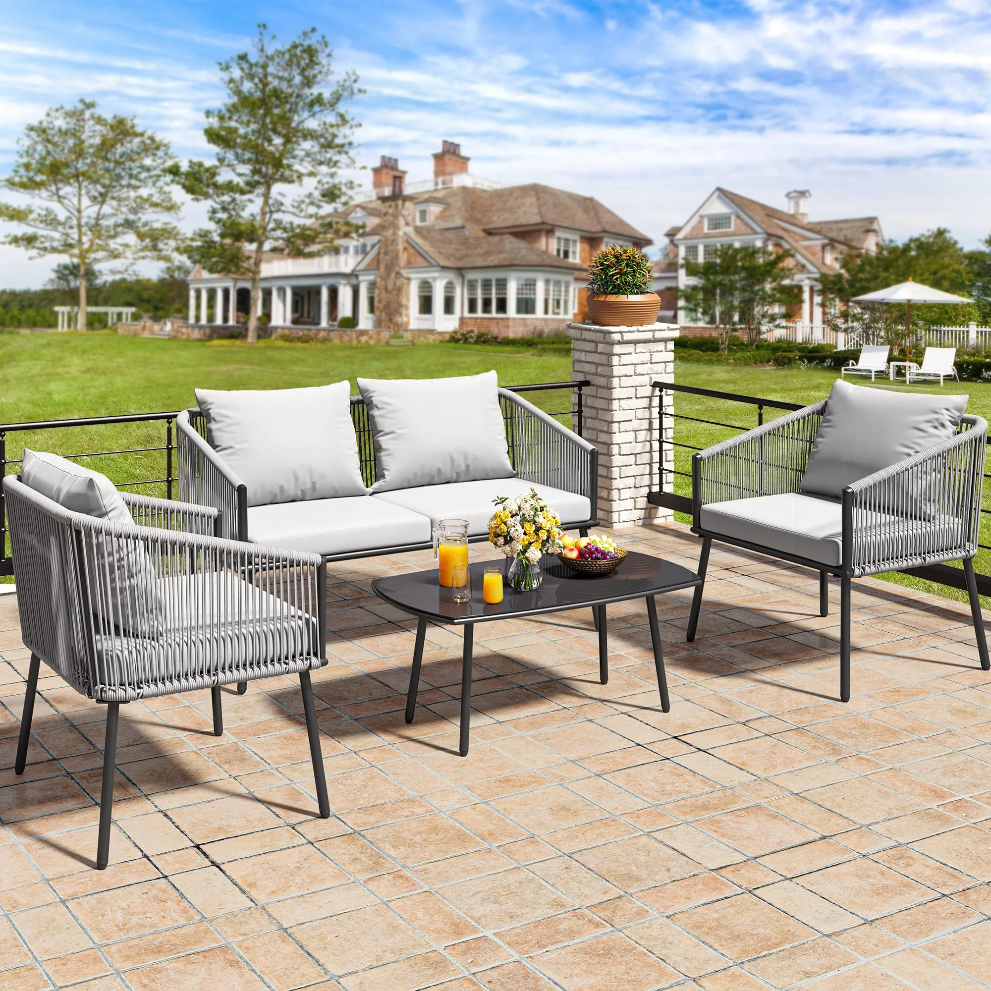 - COMFORTABLE SEAT: Looking to experience outdoor leisure in style and comfort? This patio furniture set fits the bill; Ample seat space with thick cushions allows cozy parent-child time, as well as great snuggling with your pet; Cushion cover is detachable for easy maintenance
