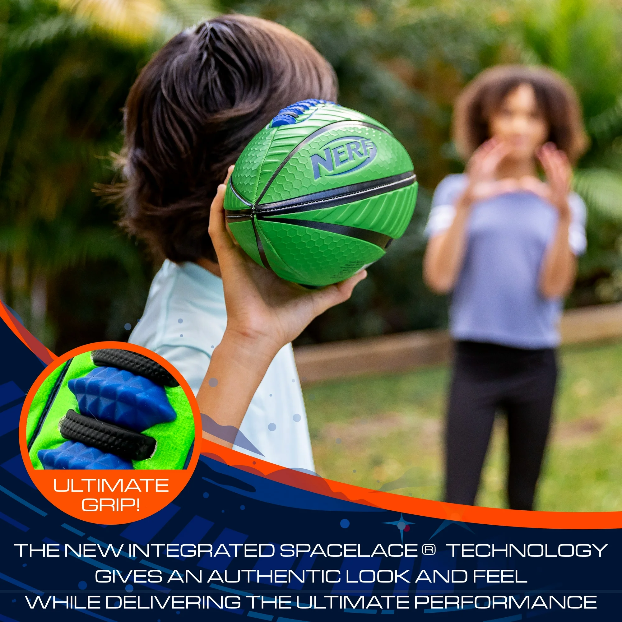 Play at your highest level with the NERF Spiral Grip football! This football features a hand stitched textured surface that gives this football a premium look and feel. The new integrated patented SPACELACE® enables any player to throw the ultimate spirals and catch like a pro. Practice passes and catches with a ball that can hold up to any weather, rain or shine!