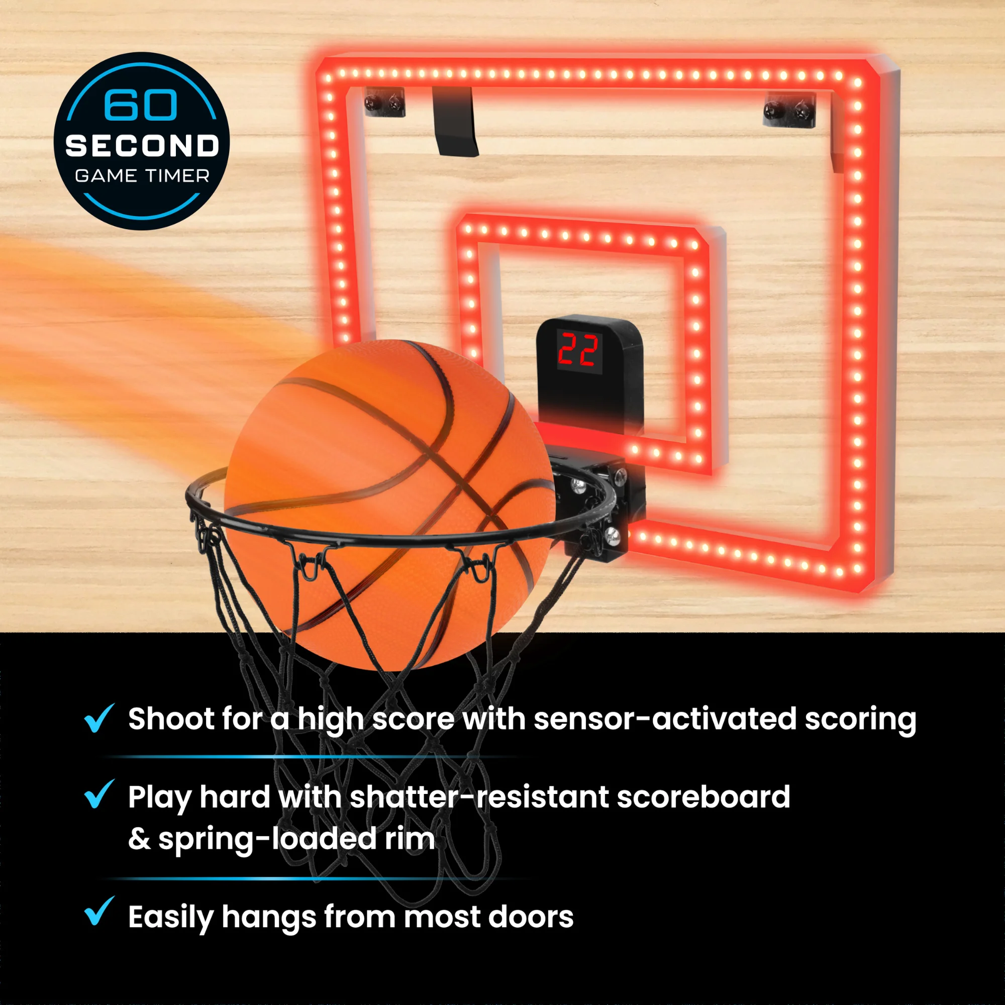 • PRACTICE HOOPING SKILLS: Shoot baskets in any room with a door!
