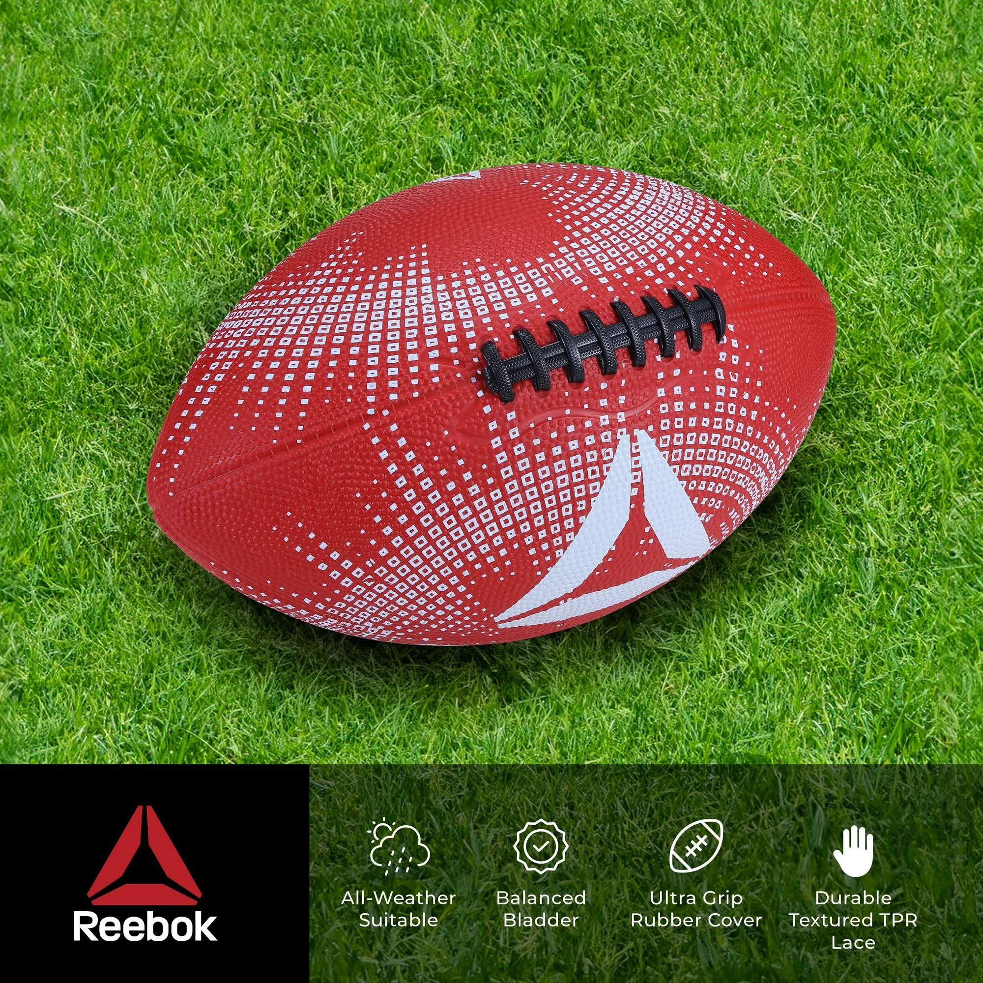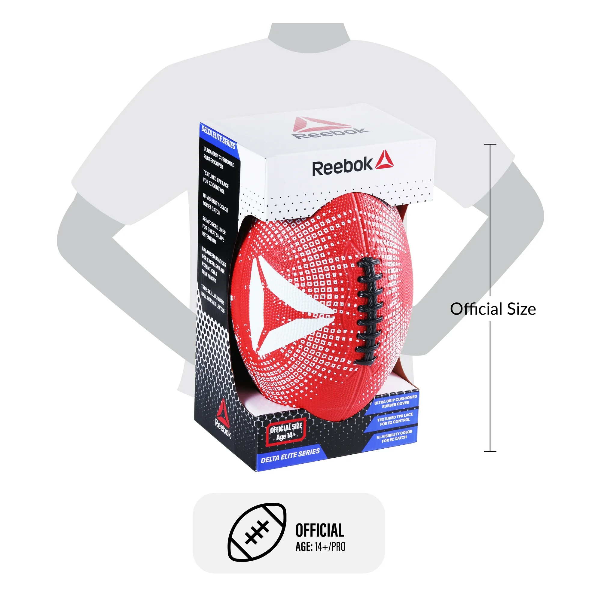 The Reebok Delta Football, made with sponge cushion rubber, introduces a new level of performance and comfort to the varsity sports arena. This football is constructed from a unique sponge cushion rubber material, which not only ensures an exceptional grip but also provides a soft touch, significantly enhancing playability and handling comfort. Meeting the exacting size requirements for varsity play, it is an ideal choice for high school and collegiate athletes looking to excel on the field. Built with durability in mind, this football withstands the intense demands of both practice and competitive environments, ensuring athletes can rely on its performance game after game. The aerodynamic design of the football allows for precise and stable flight, making every pass and kick count towards victory. With the Reebok Delta brand behind it, athletes can trust in the quality and innovation embedded in this football, reflecting the brand’s unwavering commitment to equipping players with top-tier sports gear. Whether it’s gearing up for the season or pushing the limits in training, the Reebok Delta Football with sponge cushion rubber material is tailored for varsity athletes dedicated to achieving their best on the field.