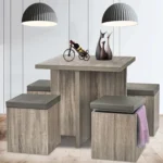 - Combine dining and storage with this striking dining set that hides storage in each of the ottomans that serve as dining seating.