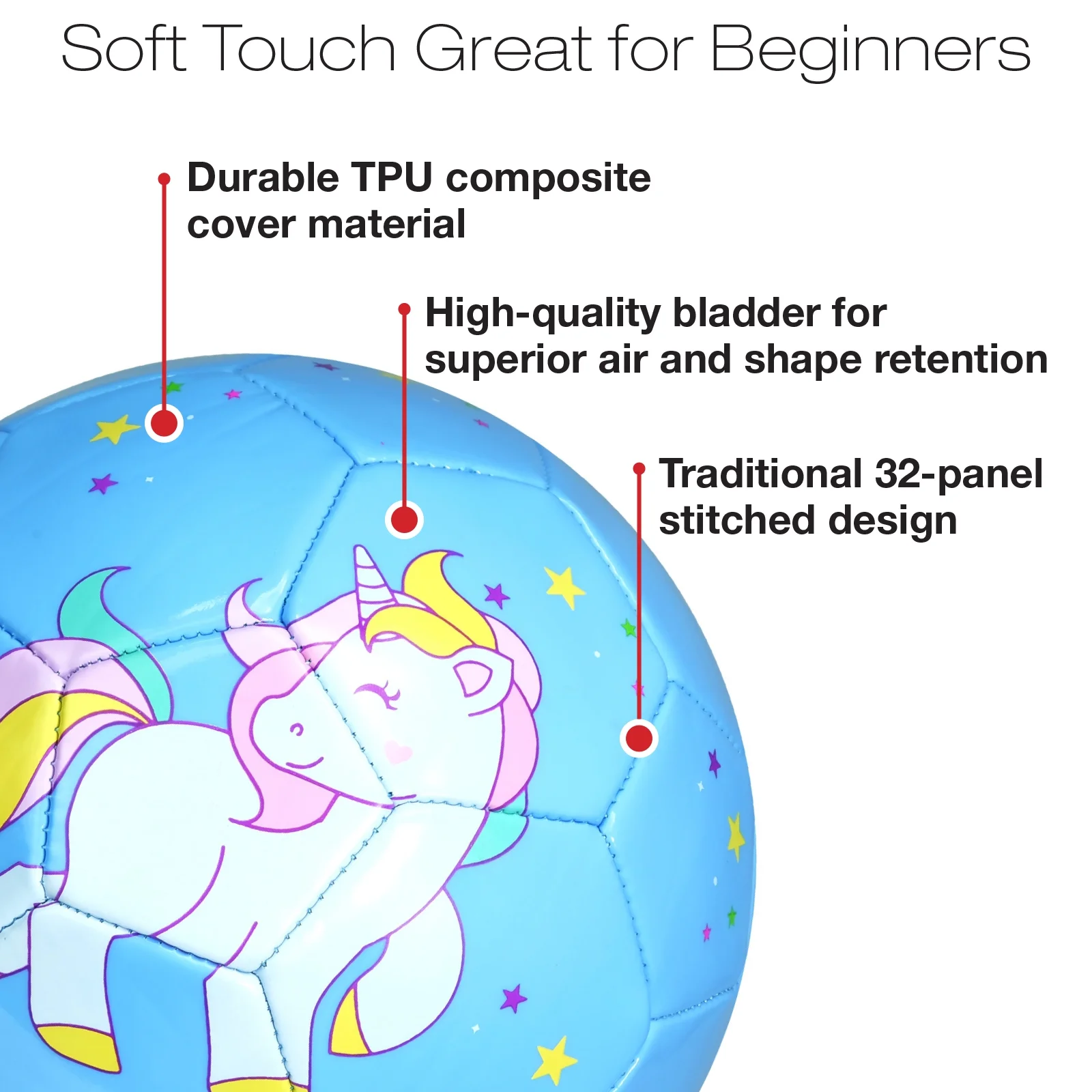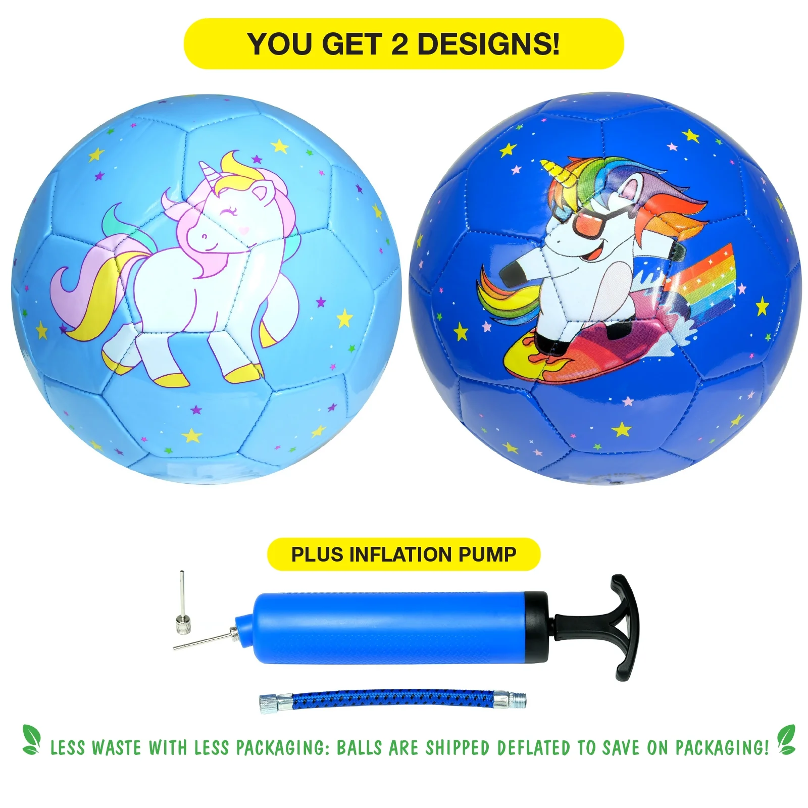 Pack of 2 High Quality TPU Size 2 Soccer Balls with Unicorn Graphics manufactured by Xcello Sports. Great Soccer Ball for around the house, soccer practice or soccer games. Kids will love the high quality, vibrant, fun graphics.
